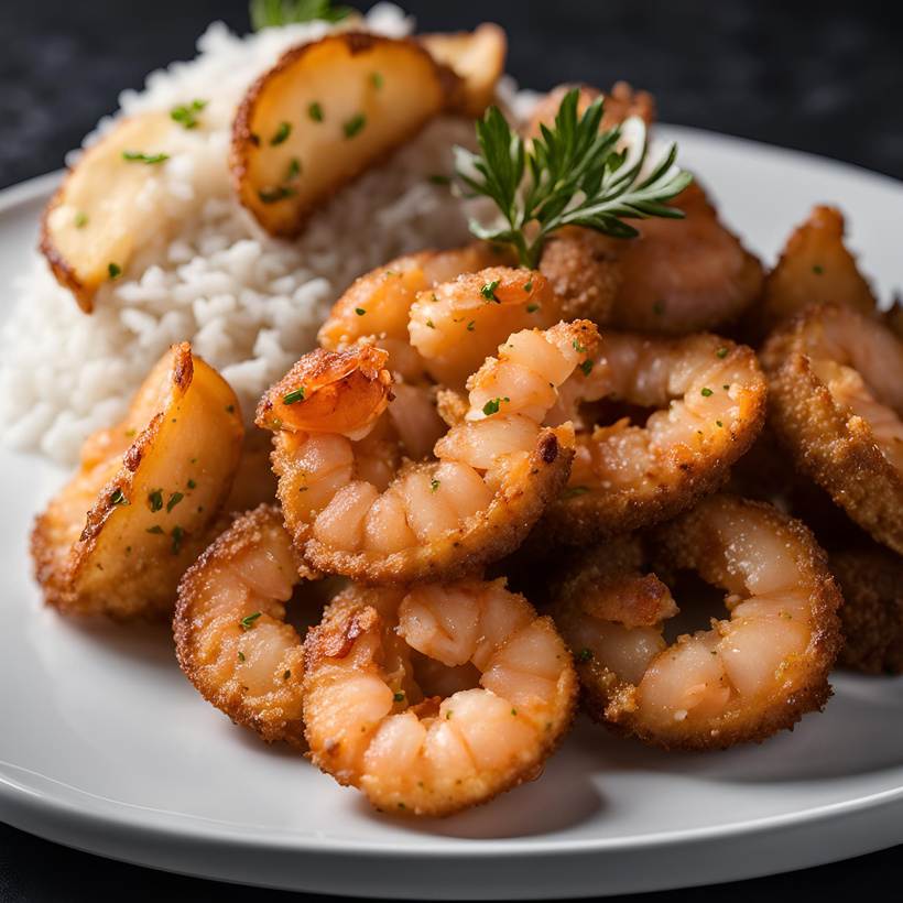 Ingredientes principales: Alitas de pollo fritas acompañadas con arroz frito de la casa.