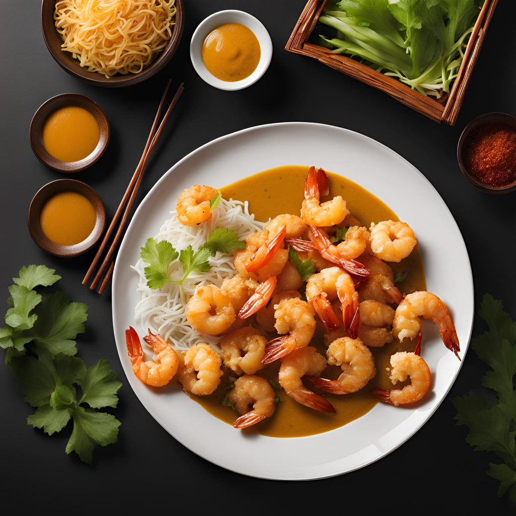 Ingredientes principales: Camarón preparado en salsa curry con cebolla blanca, chicharos, zanahoria y bambo shoots.
