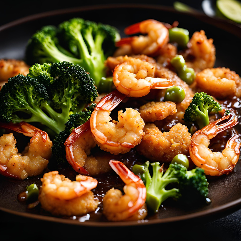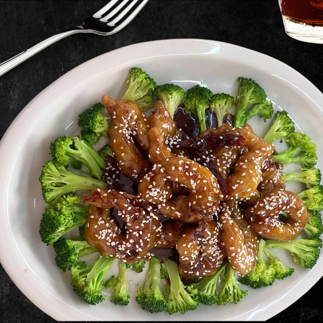Ingredientes principales: Camarón empanizado preparado en salsa especial, brócoli y chile de árbol.
