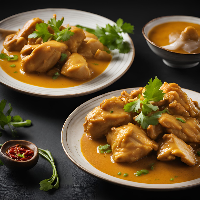 Ingredientes principales: Pollo preparado en salsa curry con cebolla blanca, chicharos, zanahoria y bambo shoots.