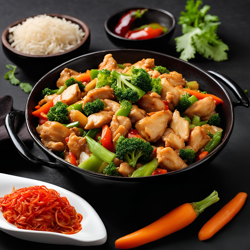 Ingredientes principales: Pollo empanizado preparado en salsa especial, brócoli y chile de árbol.