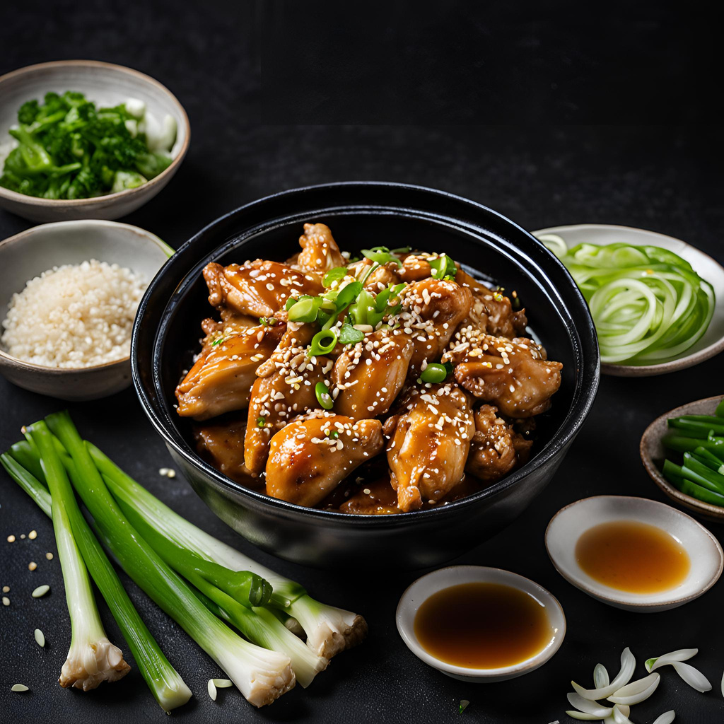Ingredientes principales: Pollo preparado en salsa de la casa con champiñones, cebolla cambray y bambo shoots